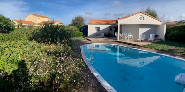 Luxueuze vrijstaande villa, 3 slpk met 6 boxsprings, en met verwarmbaar privézwembad met jetstream, dichtbij zee, in de Vendée – uiteraard gratis wifi.